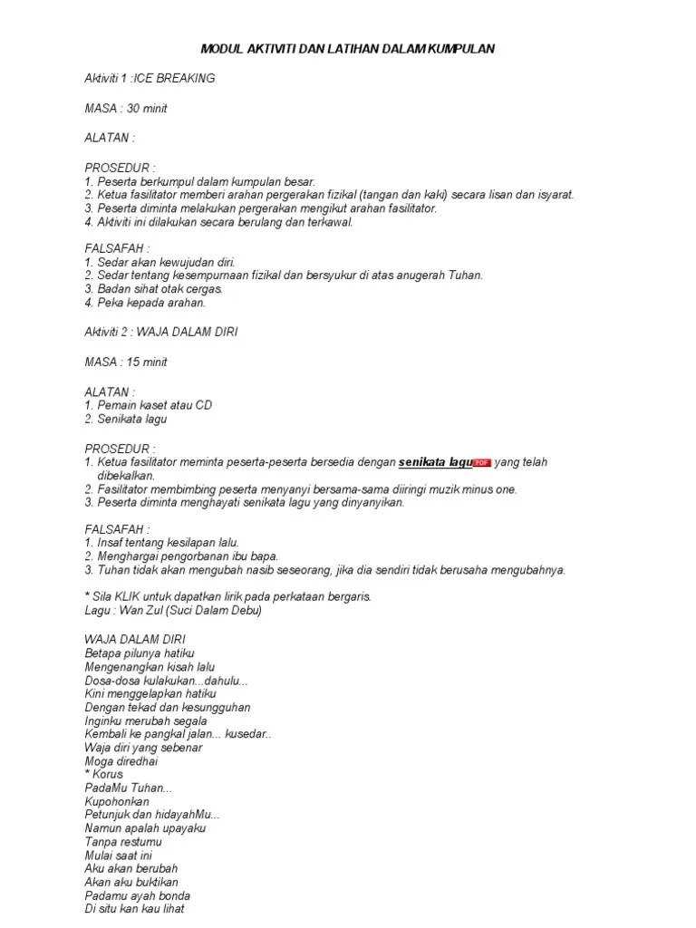 Contoh Modul Aktiviti Ice Breaking - Aktiviti Ice Breaking By Nor Azizah Issuu. Disini ika nak share contoh modul ldk yang ada dan biasa gunakan dalam program dan aktiviti. View modul ice breaking.docx from pppse cou at university of malaysia, terengganu. Lukisan masa hadapan peneguhan kepada pelajar untuk. Latihan dalam kelompok 3 masa : Modul ice breaking aktiviti 1 nama aktiviti : Modul ini sesuai digunakan diperingkat sekolah rendah, menengah dan pelajar ipta serta dewasa. Fasilitator mesti merujuk modul yang disediakan bagi memastikan .